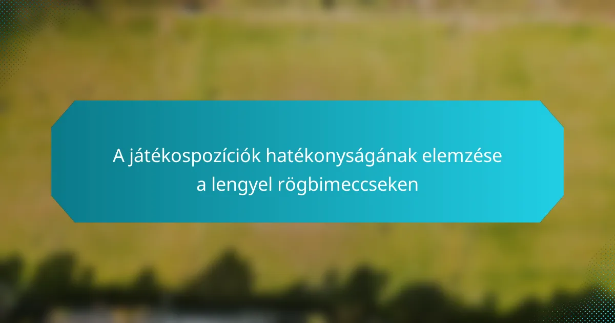A játékosok pozíciójának hatékonyságának elemzése a lengyel rögbimérkőzéseken kulcsfontosságú a csapat sikeréhez hozzájáruló egyéni szerepek megértéséhez. Különböző teljesítménymutatók, például a pontszerző hozzájárulások és a védekező akciók értékelésével a csapatok optimalizálhatják stratégiáikat és javíthatják az általános teljesítményt. Ez az elemzés nemcsak a pozíciók fontosságát emeli ki, hanem tájékoztatja a szakmai döntéseket és a kezdőcsapat módosításait.