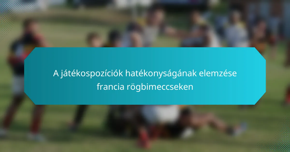 A játékosok pozíciójának hatékonysága a francia rögbiben kulcsfontosságú a csapat sikerének megértéséhez a pályán. Különböző teljesítménymutatók elemzésével az edzők és elemzők azonosítani tudják az erősségeket és gyengeségeket, ami javított stratégiákhoz és a csapat általános teljesítményének növeléséhez vezet.