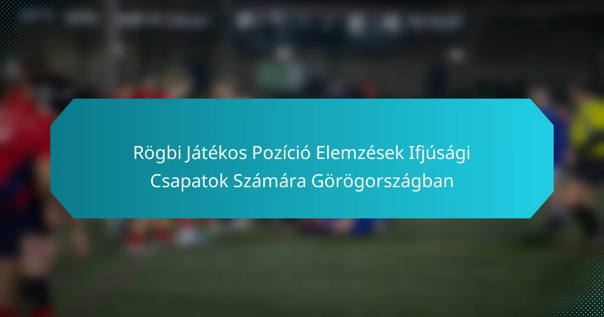 A fiatalok rögbicsapatainál a játékosok pozícióinak megértése – amelyeket csatároknak és hátvédnek kategorizálnak – elengedhetetlen a hatékony stratégia kidolgozásához és a játékosok fejlődéséhez. Az elemzések kihasználásával az edzők értékes betekintést nyerhetnek a teljesítménymutatókba, lehetővé téve számukra, hogy optimalizálják a képzést és a játékstratégiákat, amelyek a csapataik egyedi dinamikájához igazodnak Görögországban.